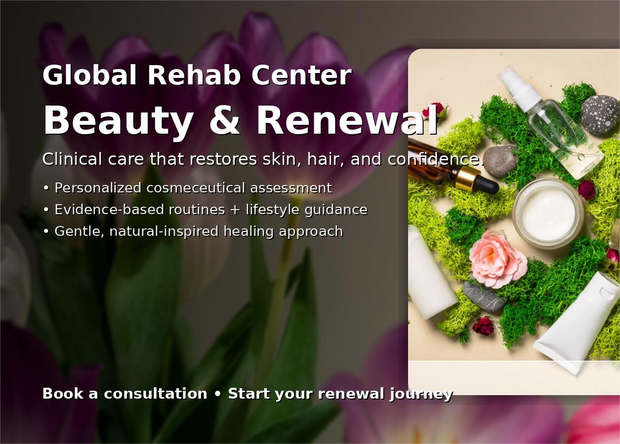 At Global Rehab Center (GRC), we offer Beauty & Renewal Services that treat skin, hair, and confidence as part of a person’s total well-being. Our approach is clinical, compassionate, and practical designed to help people recover from damage, imbalance, stress, and harmful routines, and return to healthy function and natural beauty.